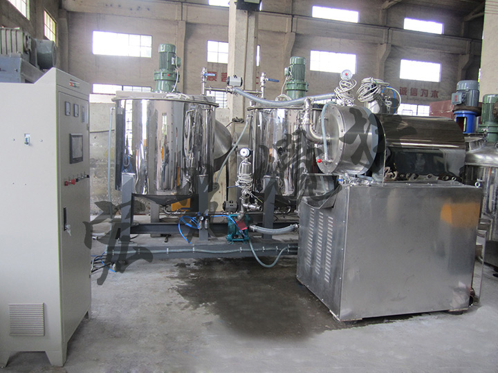 加料泵將預(yù)分散的材料送人研磨桶,研磨筒內(nèi)裝有研磨介質(zhì),磨細(xì)后的物料經(jīng)動(dòng)態(tài)分離器排出,視產(chǎn)品細(xì)度不同,可采用單臺(tái)連續(xù)或多臺(tái)串聯(lián)連續(xù)研磨工藝。